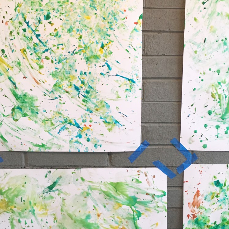 Her art is hanging on the porch to dry and then it will hopefully be made into fun party invitations!