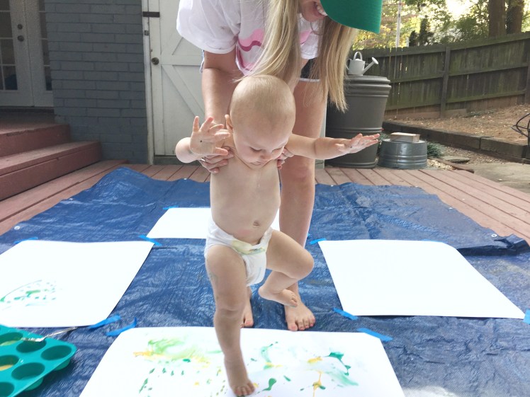 This girl has never been anti-mess, but she wasn’t superrrr into the finger painting so we tried dancing on the paint instead!