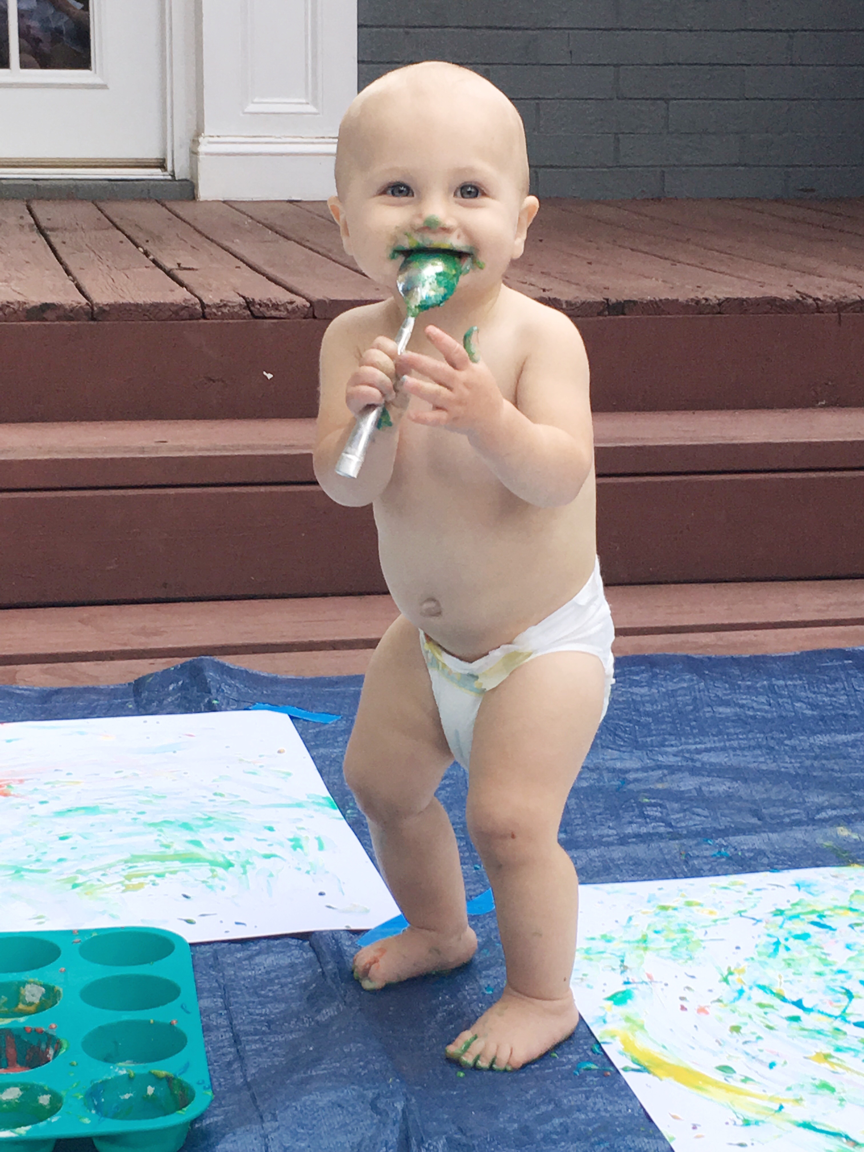 There’s our happy girl! Eating the most tasteless – BUT AWESOME LOOKING – colored milk paint stuff ever.