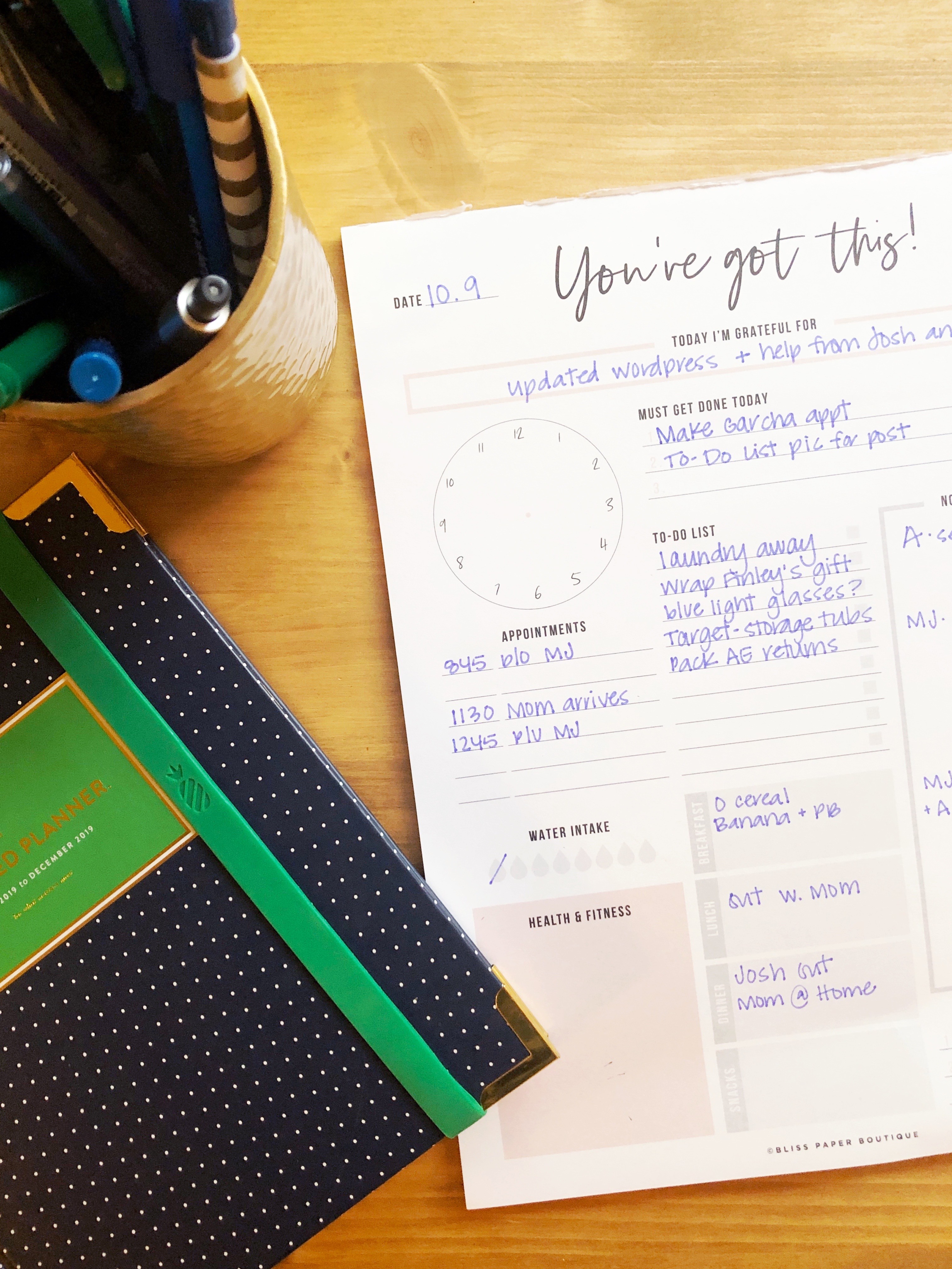 Staying along those lines, I knew that what I needed to do each morning was a brain dump. I wasn’t going to be able to get started on the tasks on my exciting to-do list, but I was able to get them out and listed on paper. And guys, that’s been more than enough!