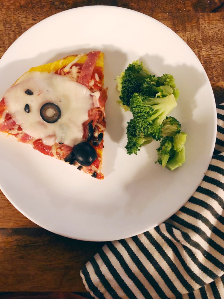 Here’s our final Spooky Halloween Pizza! Everything was warmed through and the ‘characters’ kept their shape. Boo!