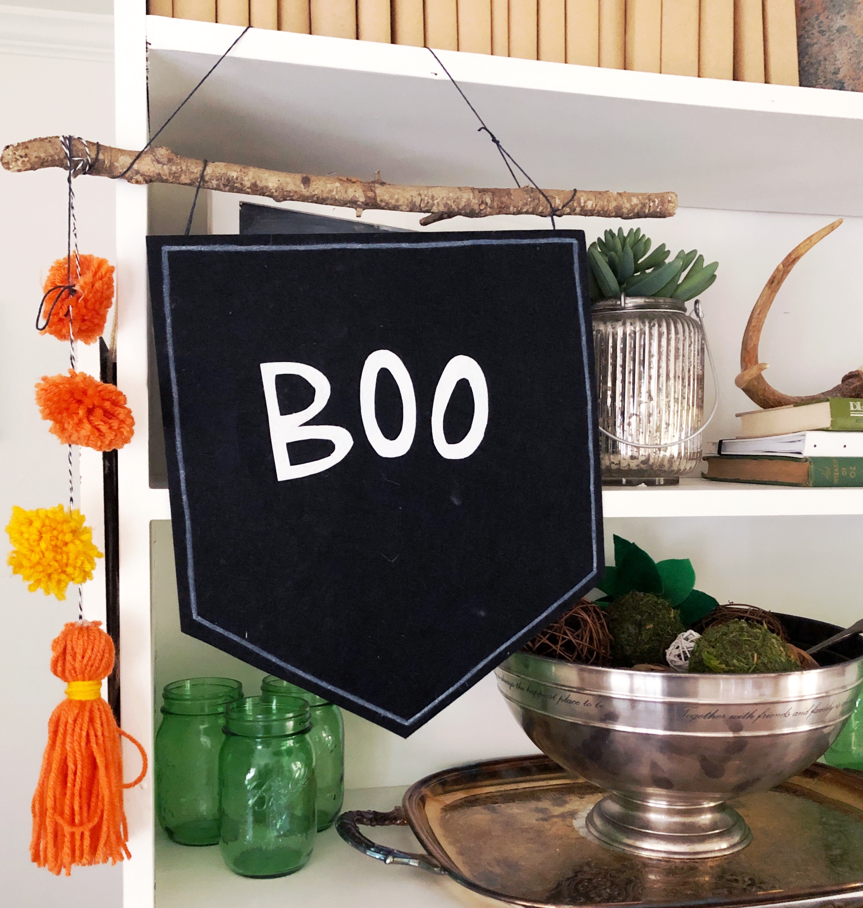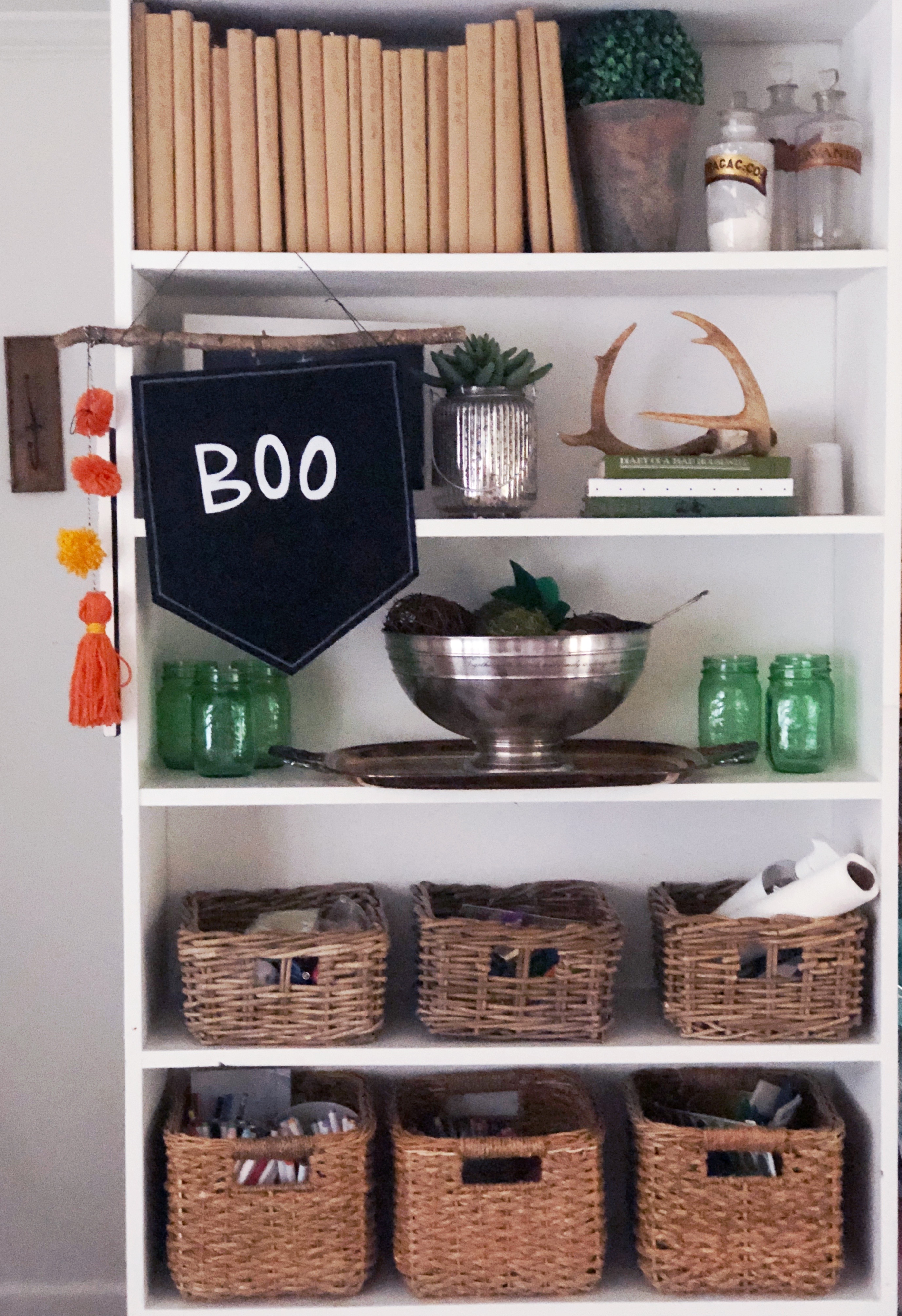 The only addition to this bookshelf is the DIY ‘Boo’ sign that I made for this potion project.