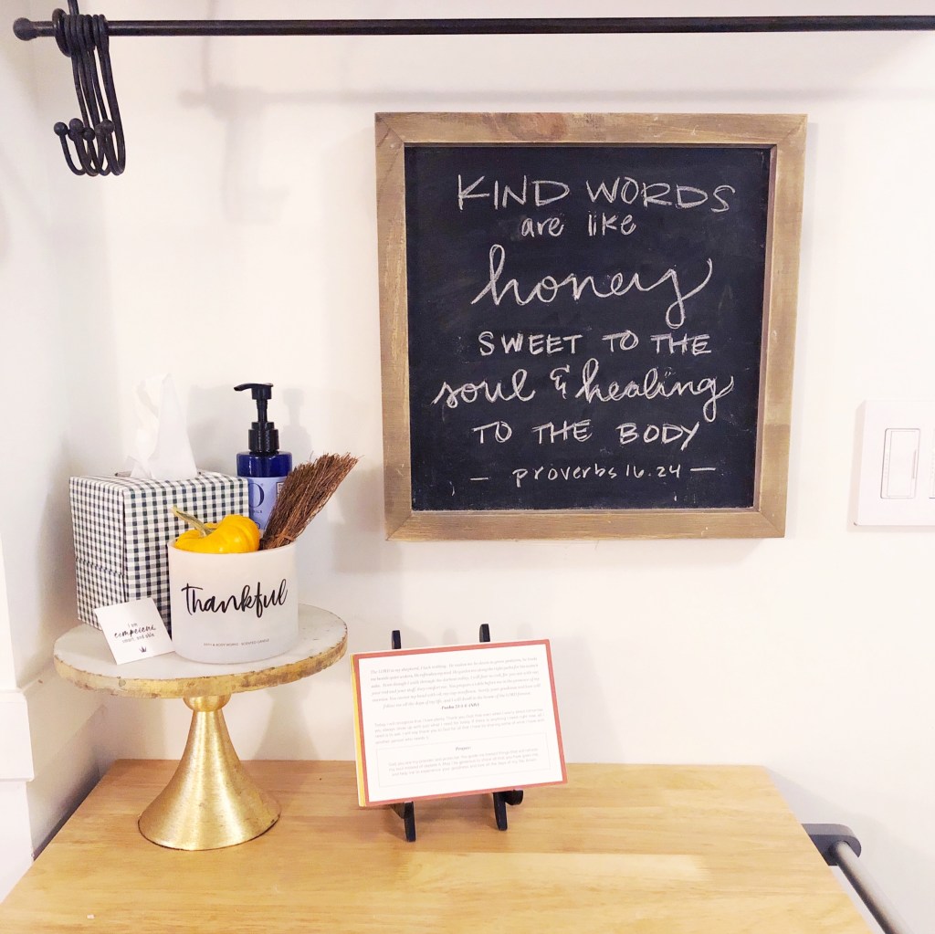 A tiny fall moment in our kitchen. This chalkboard changes often, shockingly.