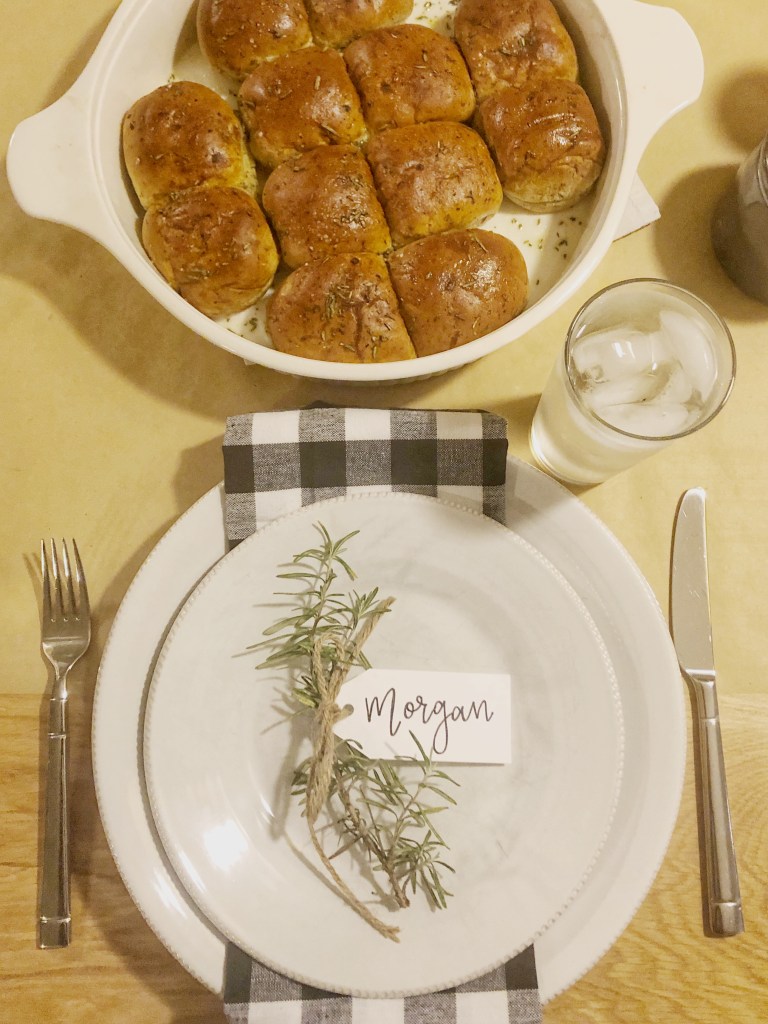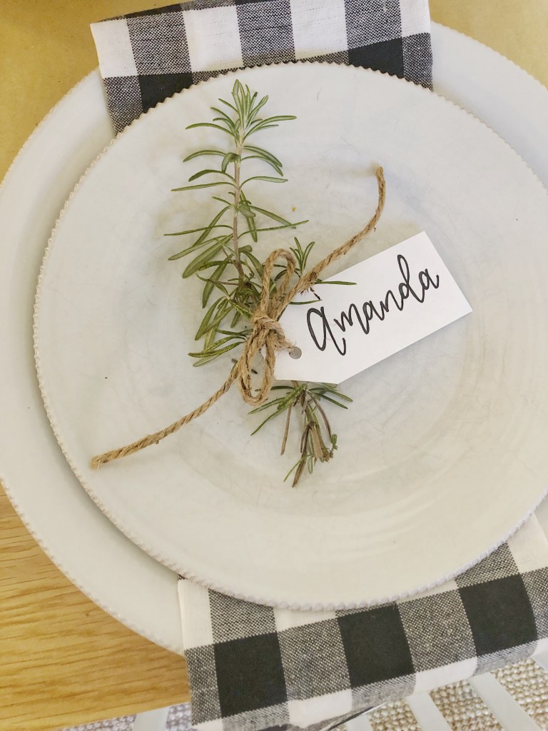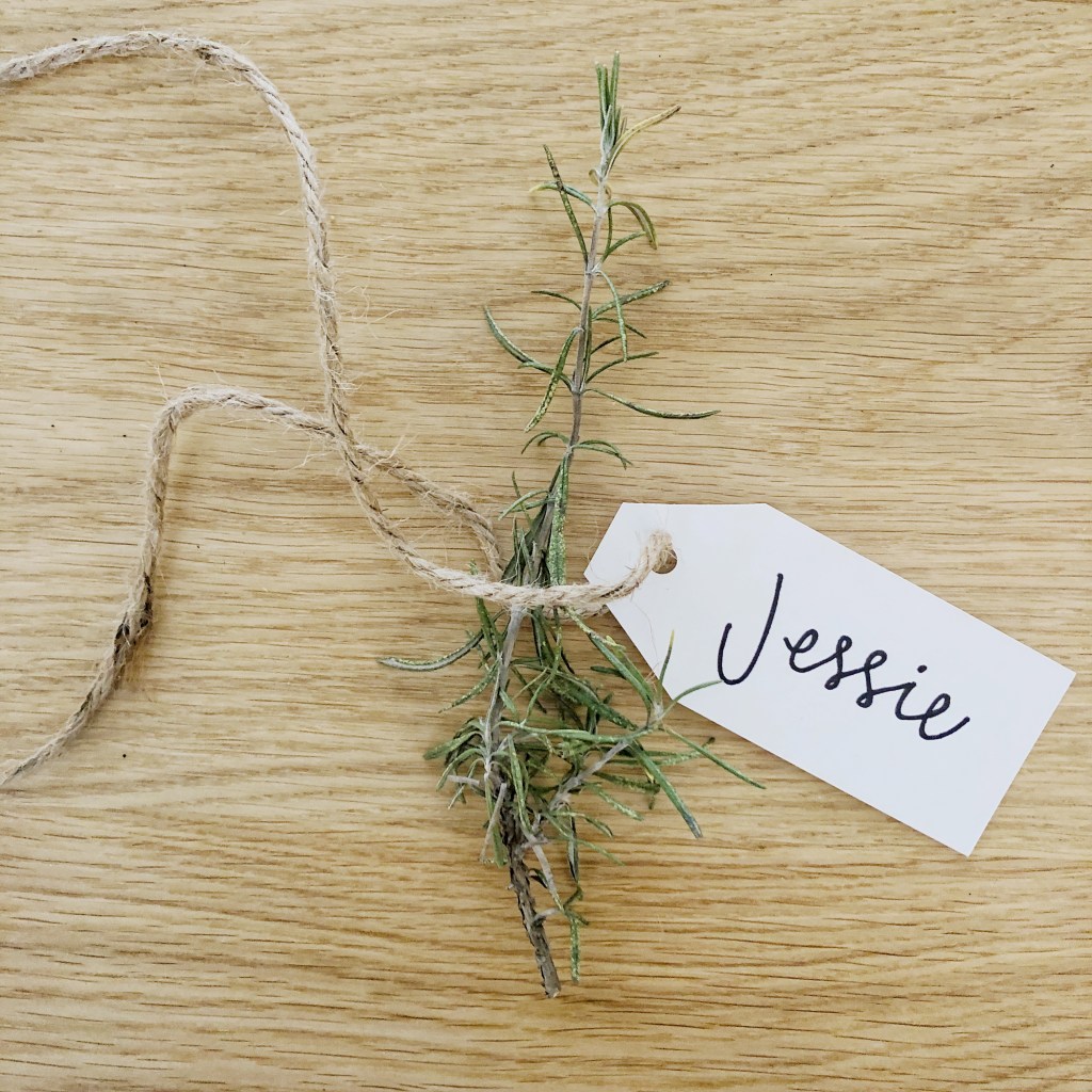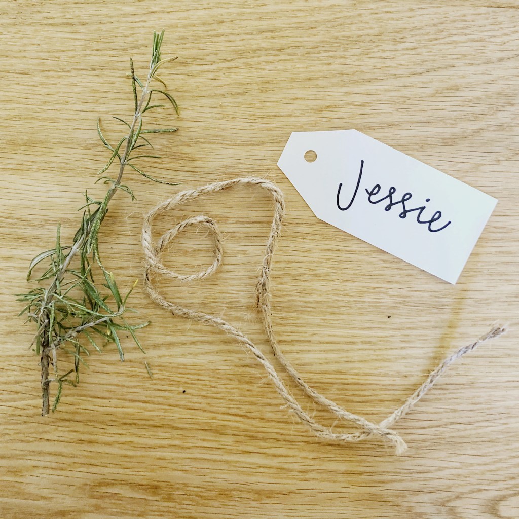 - 5-6″ Sprigs of rosemary. Two per placesetting, or one with a shorter branch connected.