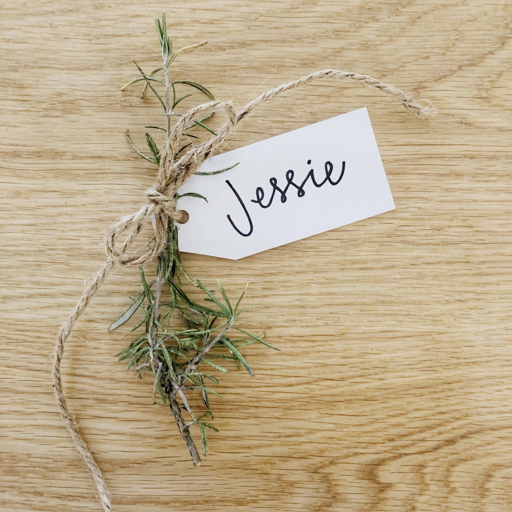 This crazy-simple placecard situation turned out great, I think. Hits that minimalist look but also personalized, fresh, and a little bit farmhouse.